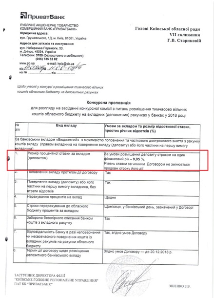 депозитних рахунках, щоб обласний бюджет поповнювався відсотками від їх