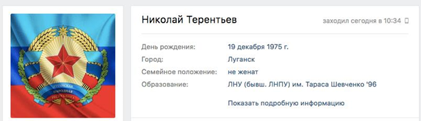 Николай Терентьев, являясь судя по странице в социальной сети убеждённым