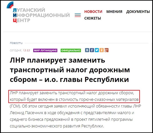 Не так давно попалась мне одна интересная новость о том, что в ЛНР планируют заменить транспортный налог дорожным сбором, который будет включен в стоимость горюче-смазочных материалов.