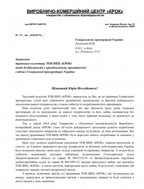 «КРоК» на имя главы ГПУ Юрия Луценко, оставшийся без реакции: