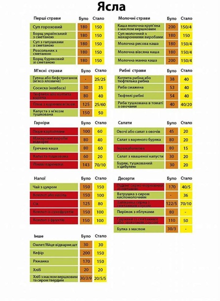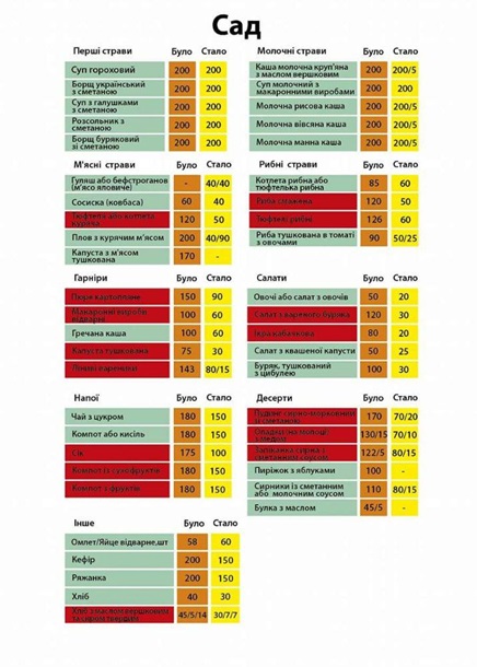 порций не соответствует нормам», - обурюється пані Вікторія. Вона склала “яскраві” порівняльні таблиці для ДНЗ.