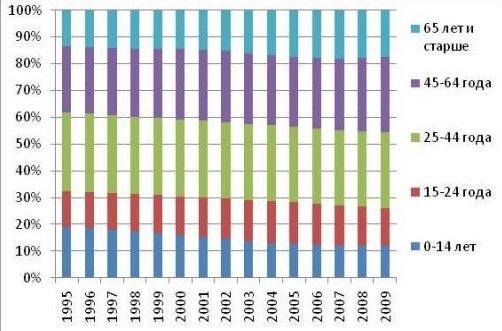 значительное старение населения. С 1995 года по 2009 численность возрастной