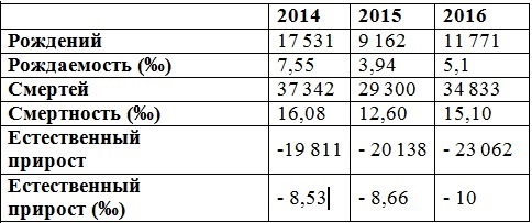 территории Донбасса скатился до одного из самых низких показателей в мире (0,9 норождённых детей на 1000 женщин в 2002 году), поэтому,