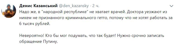 рассказав при этом о продолжающемся отъезде из Донецка докторов. Казанский
