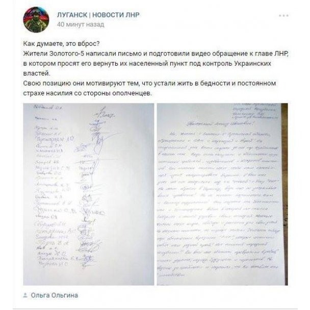 в "ЛНР". Жители оккупированного поселка Золотое-5 написали