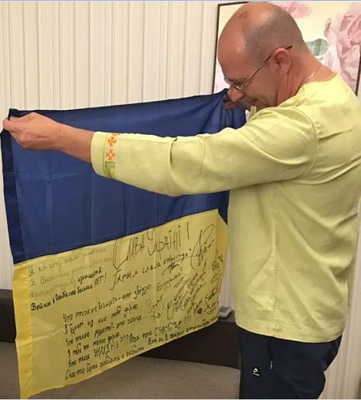 очах, що втрачаєш дар мови. Він дістав свій армійський жовто-синій прапор і з