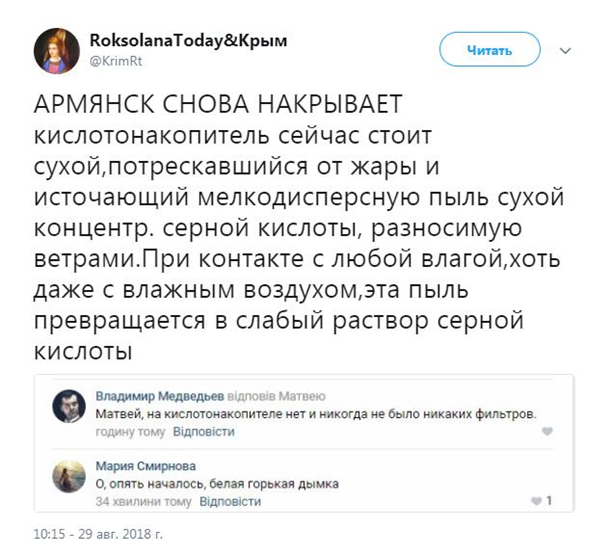 В настоящее время в Армянске продолжается расследование при участии местных чиновников и "Министерства экологии" Крыма.