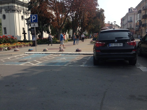 Він припаркується "я на хвилинку" своєю автівкою на місце паркування для автомобілів людей з інвалідністю.