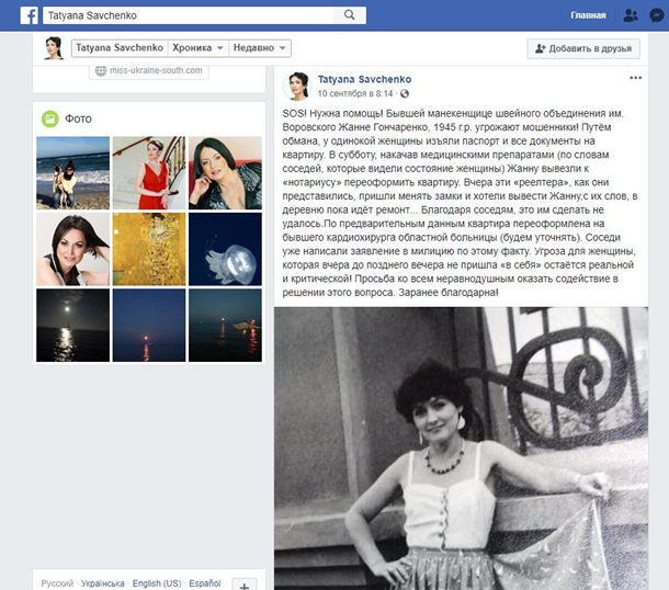 Однако Савченко публично назвала доктора Соломиенко «черным риэлтором» и обвинила в попытке отобрать у бабушки-модели ее