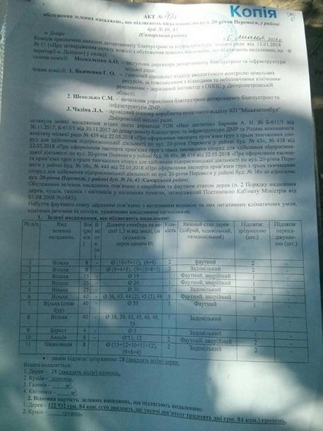 металлами Приднепровки, воздух. После спила провести благоустройство