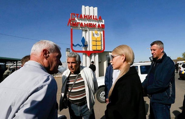 Юлия Тимошенко в День защитника Украины посетила контрольно-пропускной пункт в Станице Луганской.