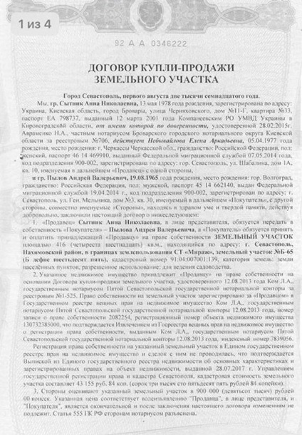 продаж цієї ділянки громадянину РФ Пилову А.В. (паспорт 4514662140,