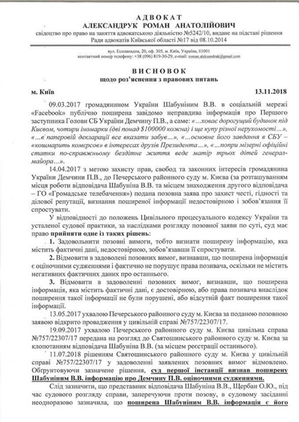 ЦПК, немає жодної згадки про те, що представник Віталія Шабуніна в суді  назвала всі висловлювання свого клієнта щодо