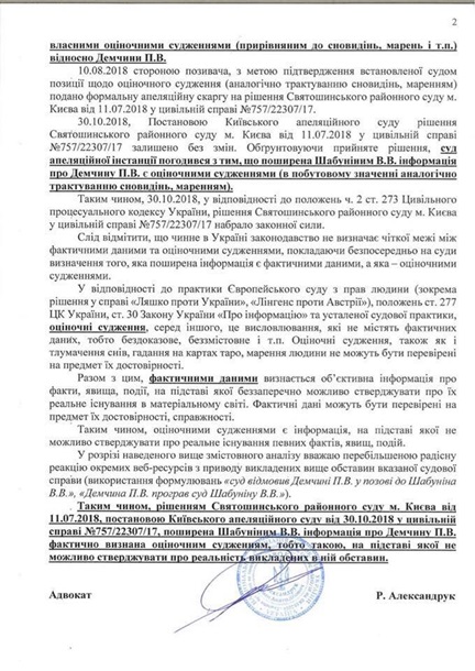 т.п.). І суд визнав інформацію, яку надавав Шабунін «оціночними судженнями»,