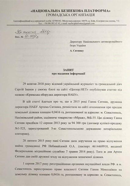 інформації подали запит до голови Національного антикорупційного бюро України –