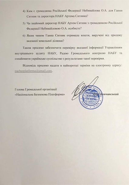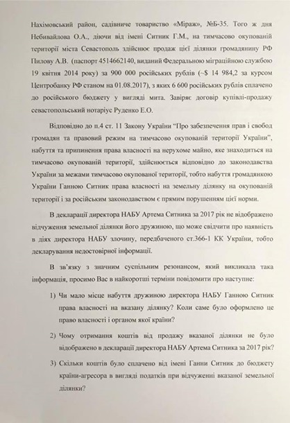 Ситник дає доручення на право відчуження майна громадянці РФ Небивайловій