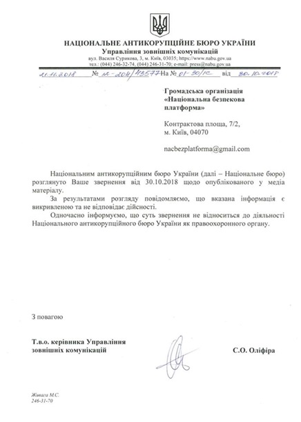 поясненнями, Бюро просто відписалось – «інформація є викривленою та не відповідає