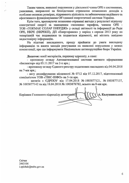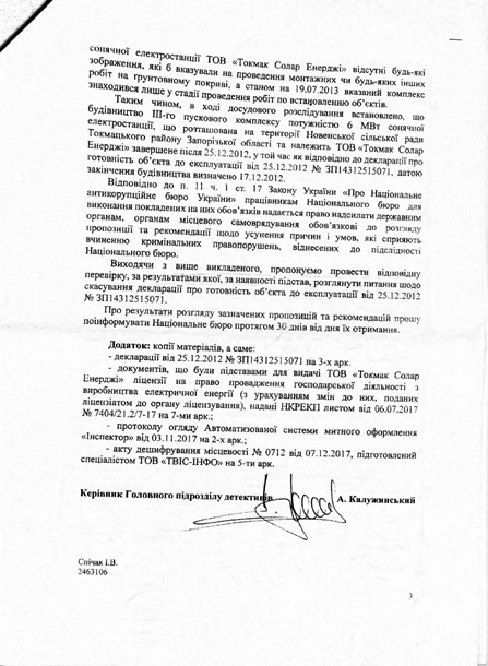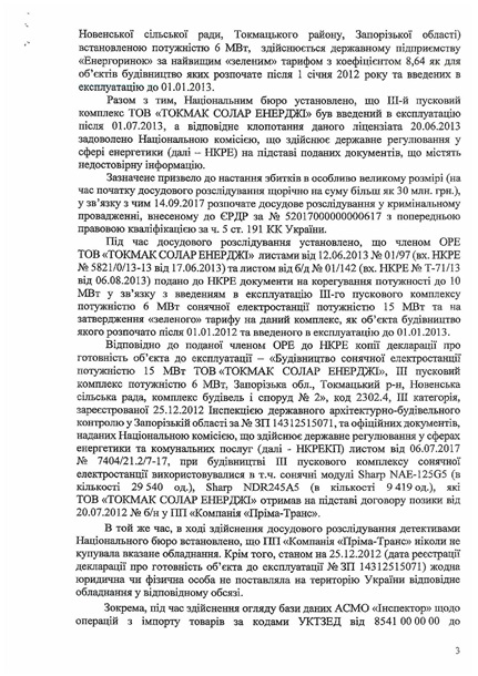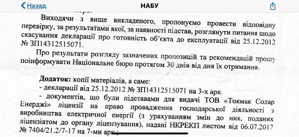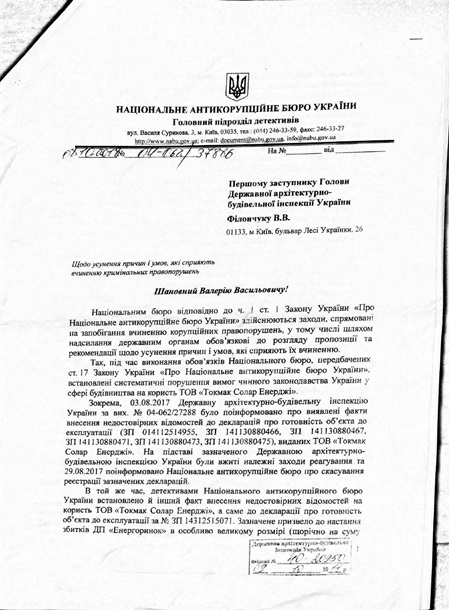 «Токмак Солар Енерджі» в сфері будівництва. Аналогічний лист НАБУ