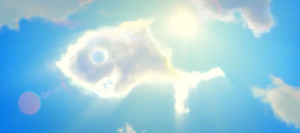 барашков сидят на лугу, а по небу проплывает, четко видимый «облачный», кит! Один говорит другому: «О! Смотри, это похоже на рыбу с огромными