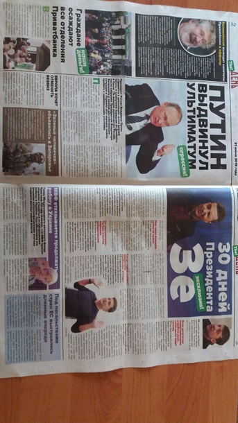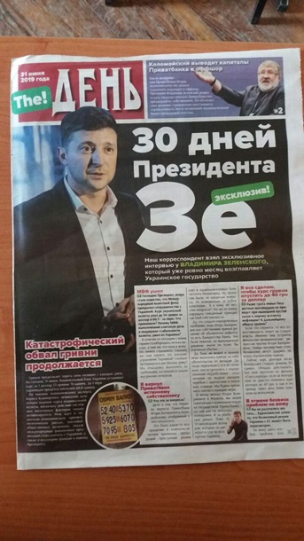 Данная газетка - находка для футуролога и прогнозиста (шучу, естественно). Задумка такова, что Зеленский уже якобы пришёл к власти и в стране наступил полный, окончательный и бесповоротный ЗеЗдець :) В ироничной форме высмеивается неопытность Зеленского, его интеллектуальная слабость и якобы стопроцентная зависимость от олигарха Коломойского. В конце говорится, что всё это - шутка, однако может стать реальностью в случае прихода к власти "шута-марионетки олигархов". Читать было действительно весело, я думаю, многие, в том числе и в штабе Зе, знатно посмеялись над этим.