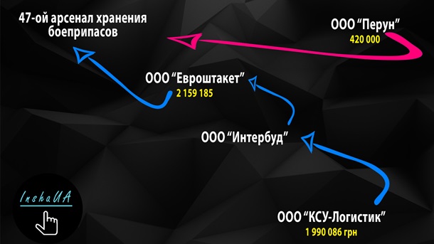 В предыдущей части расследования удалось установить коррупционные связи следующих организаций с командиром 47-го арсенала хранения боеприпасов: ООО «Евроштакет», ООО «Интребуд», ООО «КСУ-Логистик» и ООО «Перун».