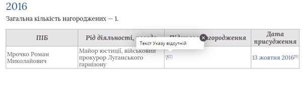 Мало того, что Роман Мрочко умалчивает о наличии награды, так и самого текста Указа о награждении нет!