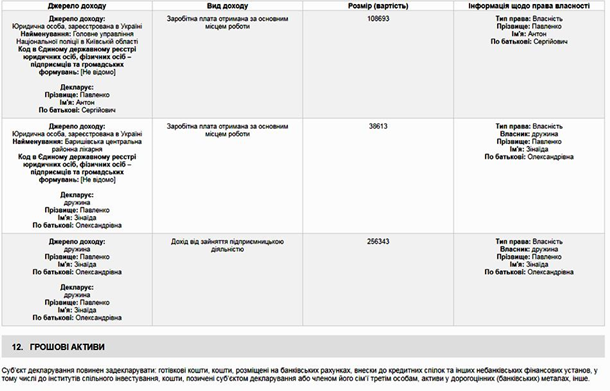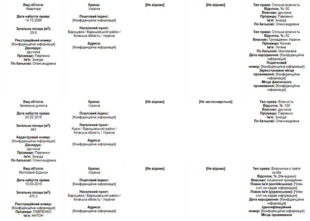 видатків. Так само, як і не декларує придбаного у Антона Павленка рухомого