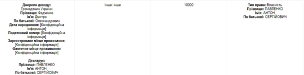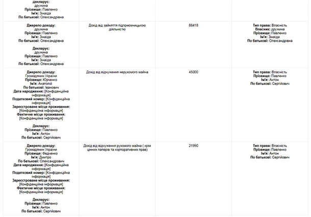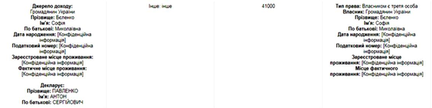 Павленко отримав від громадянки України Бєленко Софії Миколаївни 41 тис. грн.
