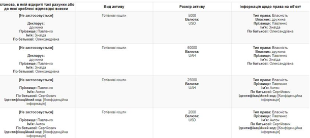 цього, Павленки мали готівку, розмір якої в перерахунку у гривневому