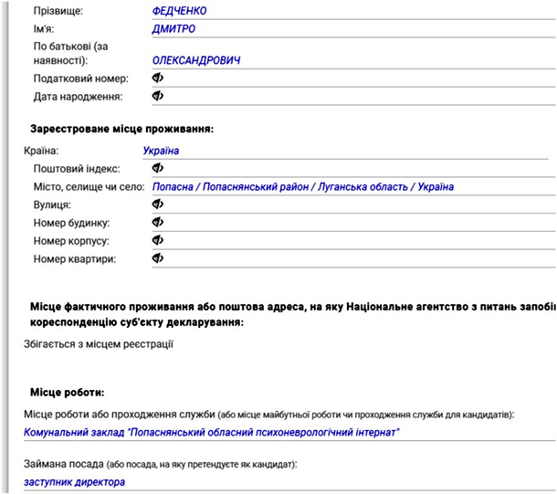 інтернат» Луганської області у декларації за 2018 рік не вказує жодних