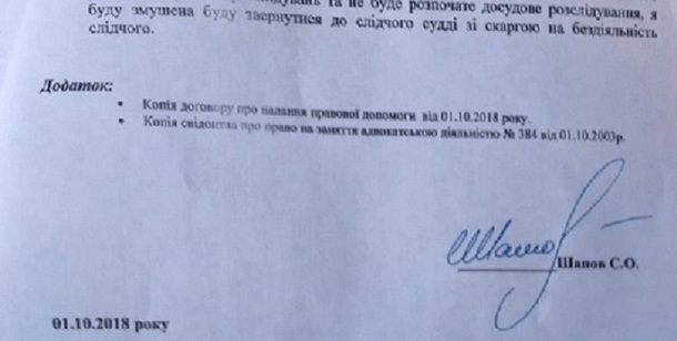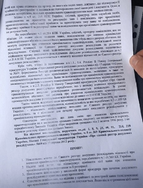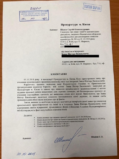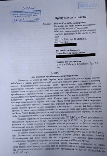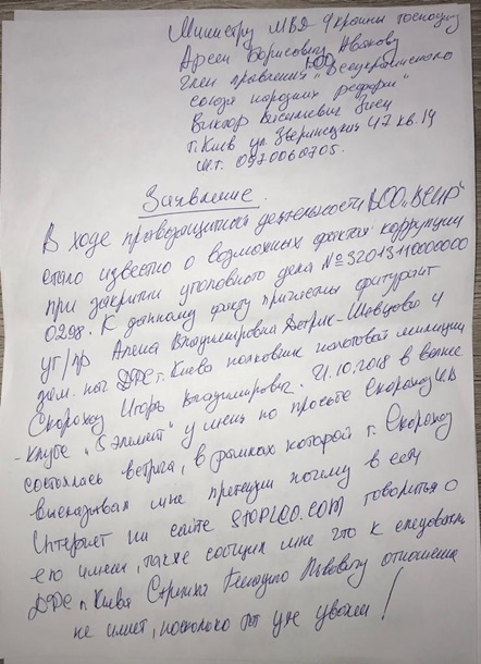 Киева с заявлением о фактах корупции в ДФС г. Киева, Нацполиции Украины и СБУ.