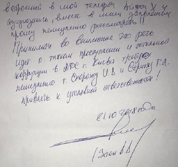 своем iphone Х и сразу после встречи пишет заявление на имя Министра Внутрених