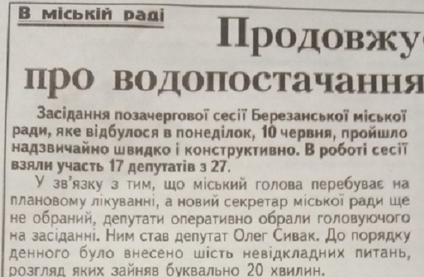 проігнорував позачергове засідання сесії Березанської міської ради, яке 10