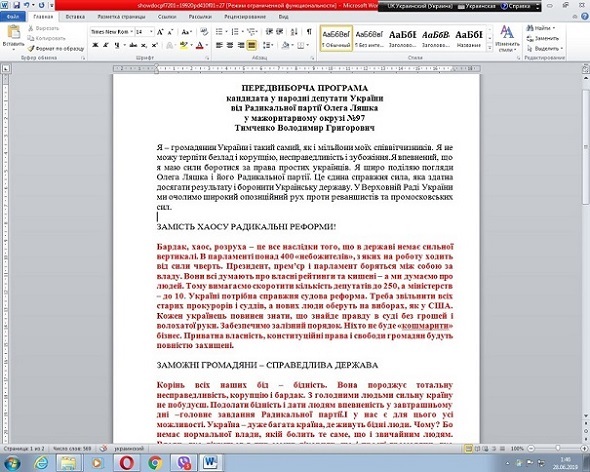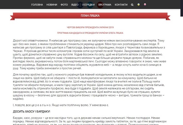 сайт ЦВК, знайшли подану кандидатом передвиборчу програму і… поторопіли: