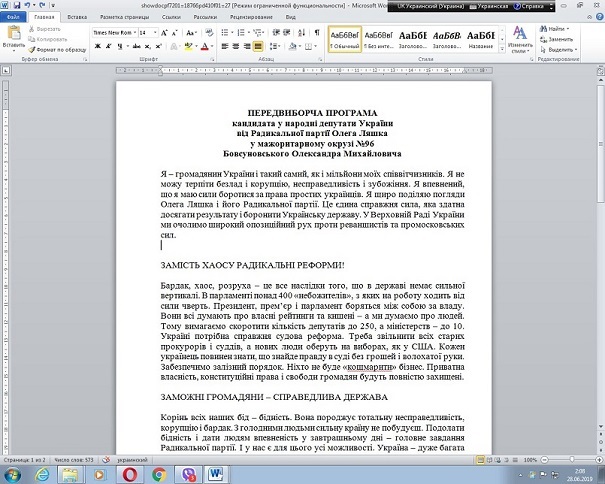 передвиборчій програмі кандидата-мажоритарника від Радикальної партії Олега