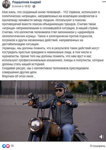 созданный мною телеканал - 112 Украина, используют в политических «игрищах»,