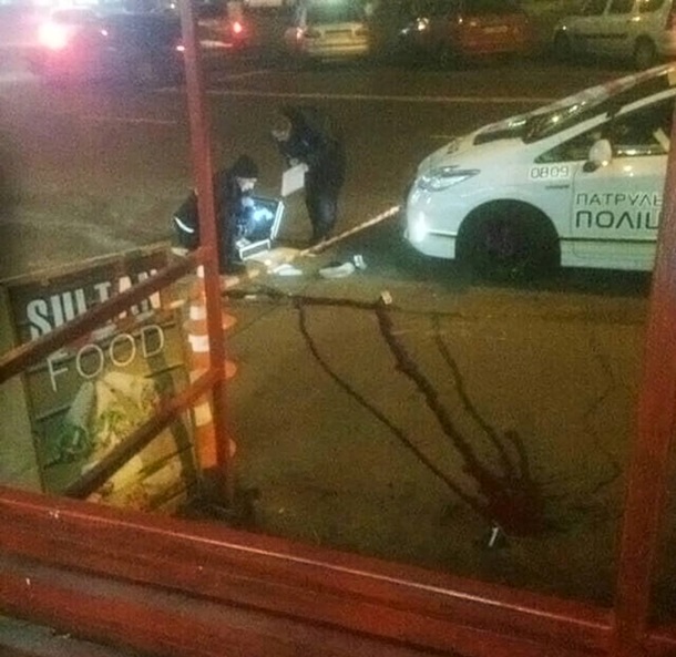 забрызгав кровью весь тротуар и остановку. Выстрел был произведен в упор и пуля