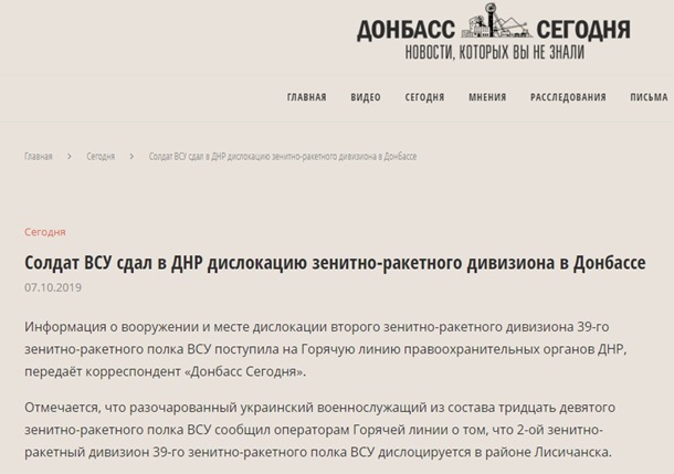 о дислокации нашего зенитно-ракетного дивизиона в Донбассе. Боевики сослались