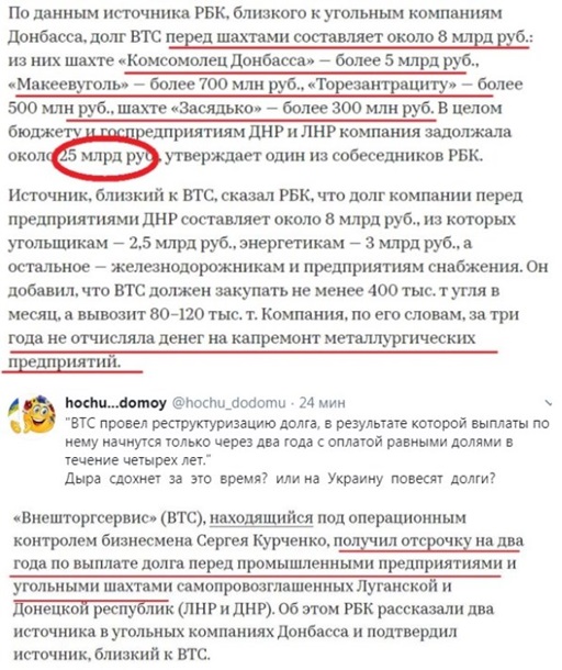 «Внешторгсервис» РФ только шахтам должен 8 миллиардов рублей. А всего предприятиям и «бюджетам» ОРДЛО – 25 миллиардов российских рублей.
