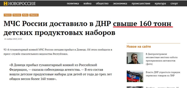 240 тонн гуманитарной помощи получил Донбасс. Куда делось ещё 130 тонн? И что