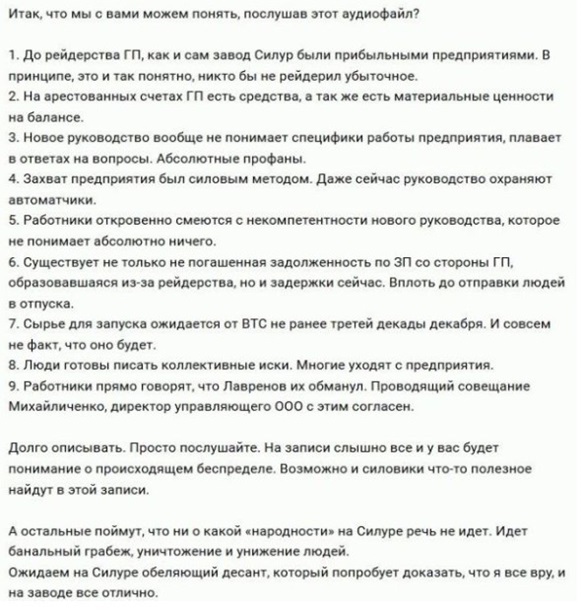 переговоров рейдеров с работниками предприятия (длинно, качество записи