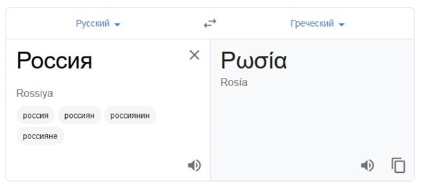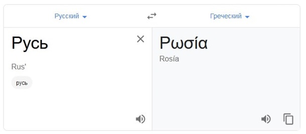 На самом деле, слово «Россия» - это греческое произношение слова «Русь». Чтобы в этом легко убедится открываем гугл переводчик.