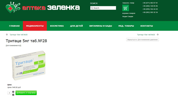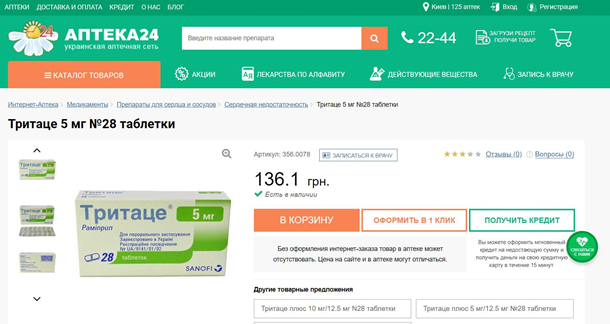 для сердечников “Тритаце” 5мг №28. Цена в ДНР составляет 949 рублей (357 грн),