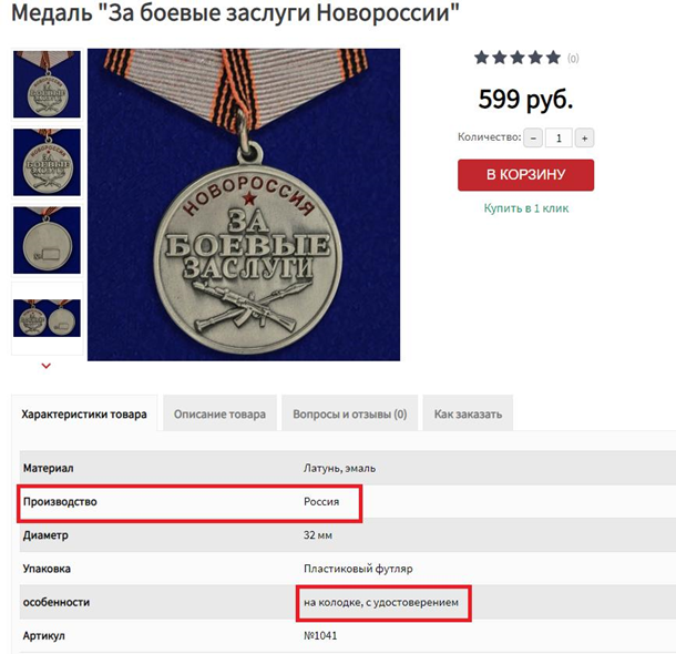 удостоверением, и цена смешная к примеру медаль “За боевые заслуги Новороссии”