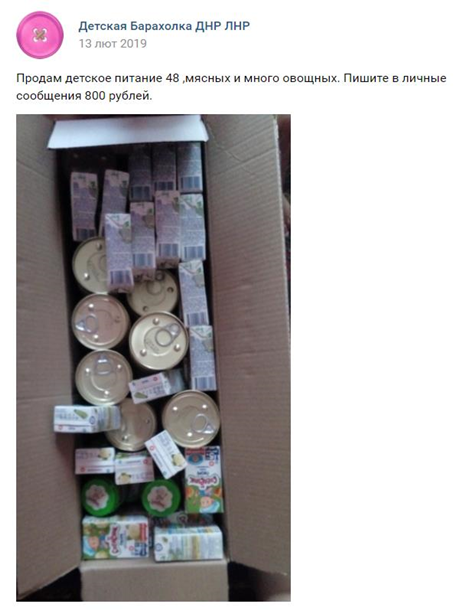 продаются наборы детского питания, из тех самых русских гумконвоев. Вес одного