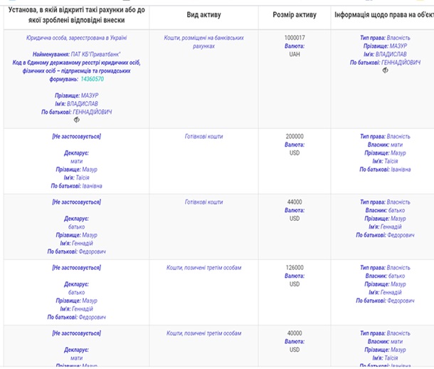 декларацій слідчого Владислава Мазура ми бачимо, що заробляє він трохи більше