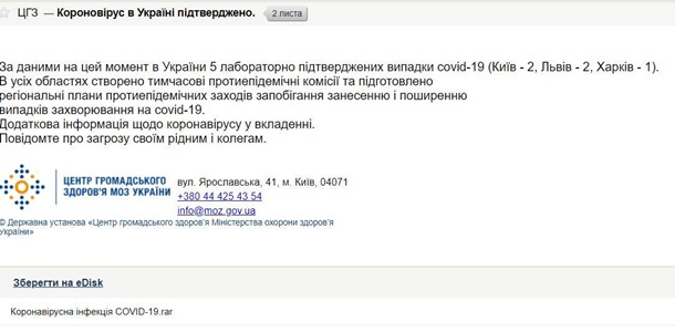 адреси info@moz.gov.ua, а у кінці повідомлення опублікована контактна