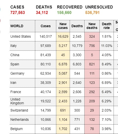 Предварительная глобальная летальность выросла до 4,7. По странам разброс очень высок - с одной стороны в Италии 11%, в Испании, Иране, Франции, Великобритании, Нидерландах выше 6%, с другой - в Германии, Австрии, Норвегии, Чехии, Израиле, Австралии - менее 1%.