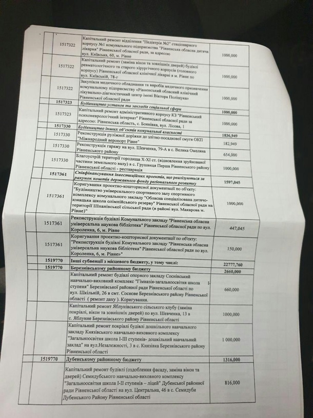 Черговий корупційний скандал з розподілом бюджету у рівненській області. З 99 млн - всього 25, інші 60 мільйонів по округам депутатів, під чітким кураторством Голови ОДА та Голови обласної ради.