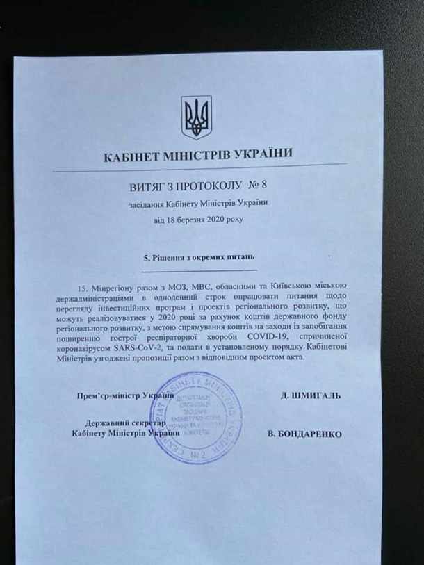 на день раніше стає зрозуміло із протоколу засідання Кабінету міністрів, який